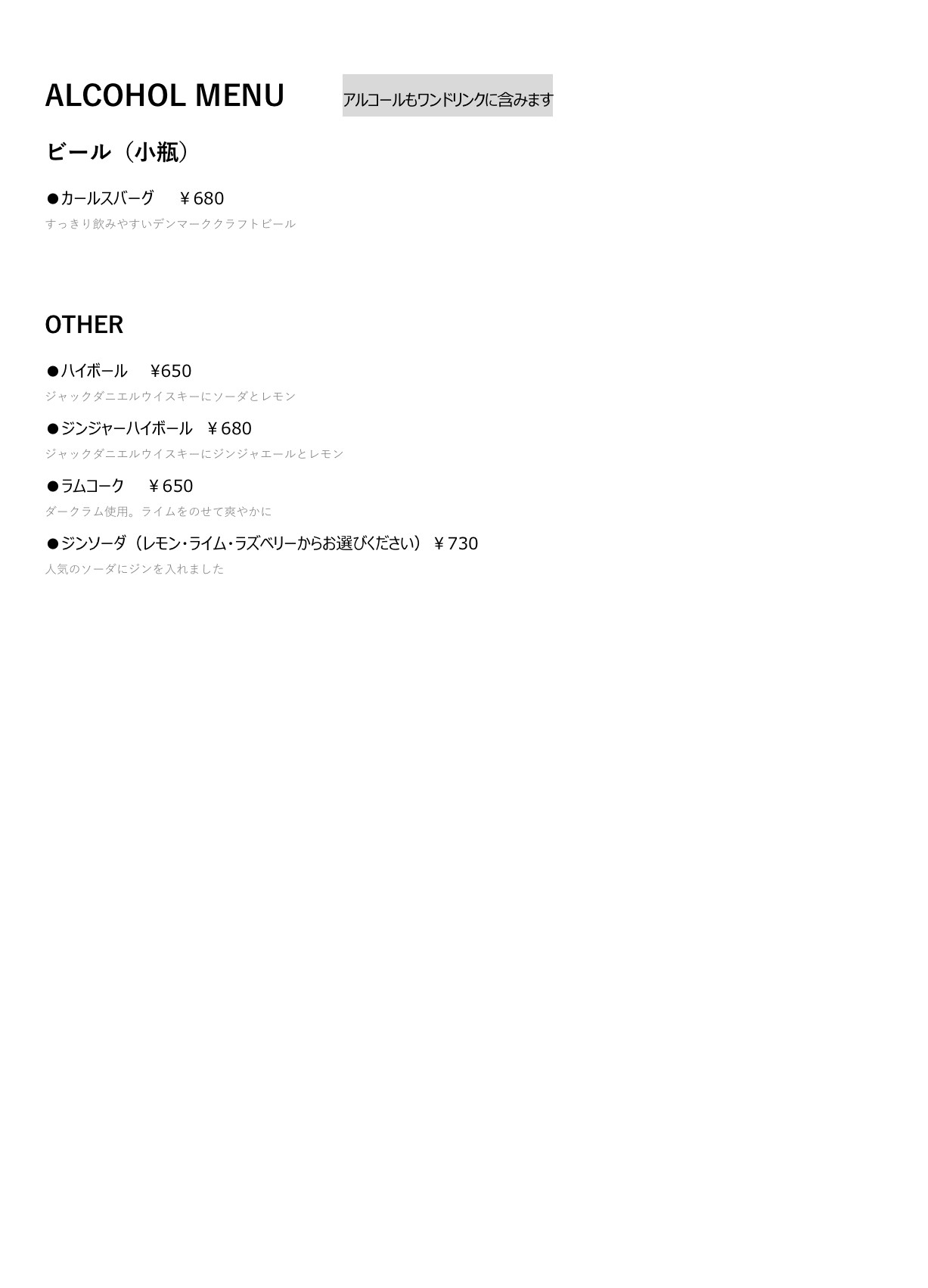ドリンク各種